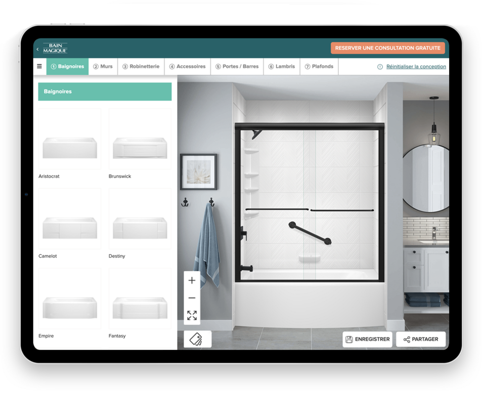 Need some inspiration? Our design tool lets you mix and match different looks and features so you can start bringing your vision to life. From showers and tubs to wall finishes and accessories, you’ll get a clear picture of your new bathroom in minutes. When you’re ready to take the next step, you can book a free consultation with our design team.